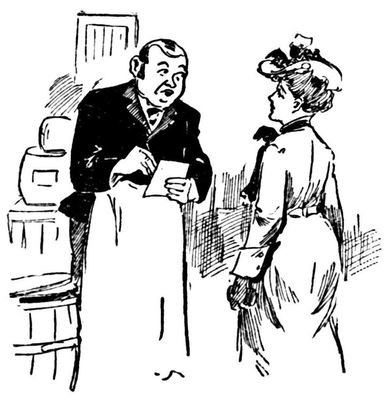 When I saw the same young matron who had ordered "condemned milk" and those other astonishing things the other day, I pricked up my ears, under the belief that something rich, rare and racy might happen.