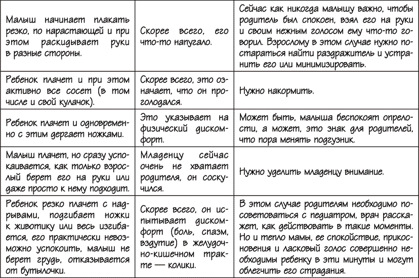 В это время плач является единственным способом для малыша, чтобы сообщить миру о неудовлетворении своих базовых потребностей. И очень здорово, если взрослый, который ухаживает за новорожденным, старается максимально быстро устранить дискомфорт ребенка.