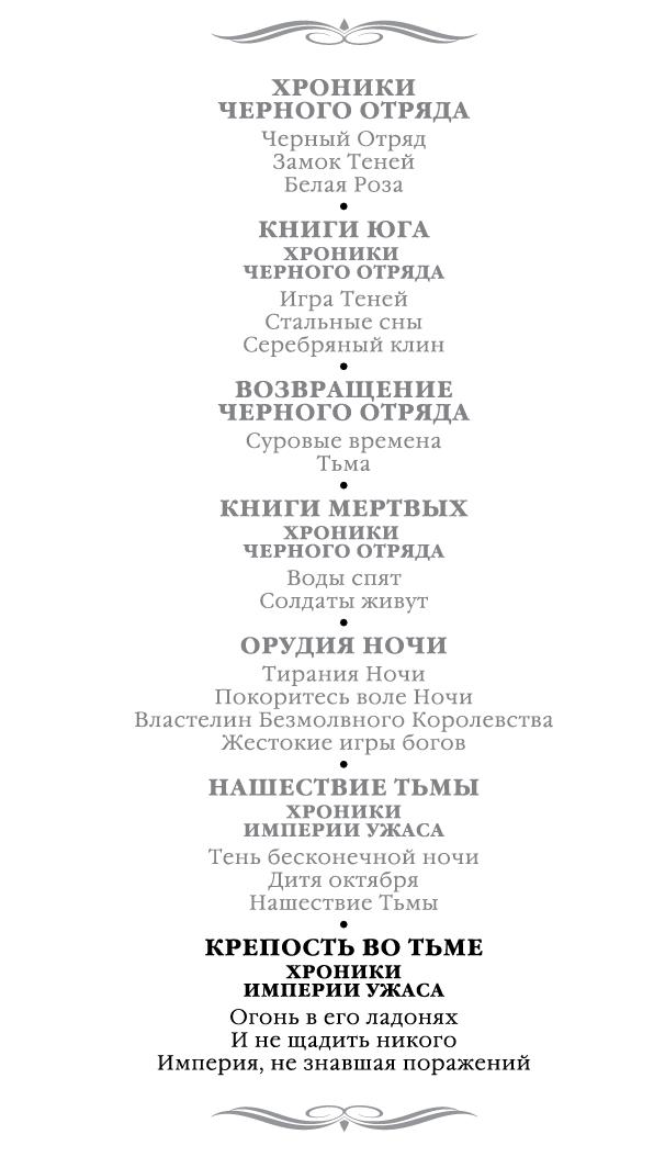 Хроники Империи Ужаса. Крепость во тьме : романы, повести, рассказы / Глен Кук ; пер. с англ. К. Плешкова. — СПб. : Азбука, Азбука-Аттикус, 2020. — (Звезды новой фэнтези).