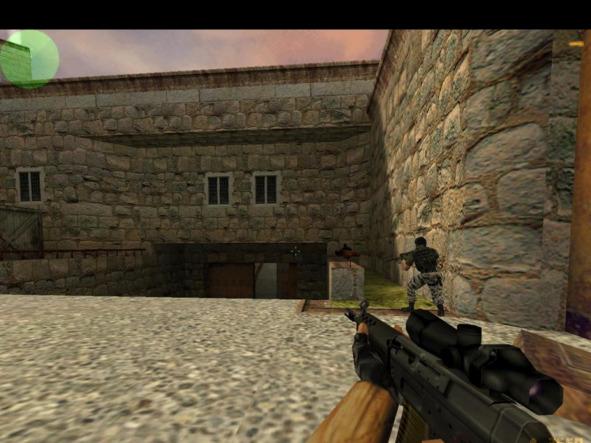 Игровой процесс Counter-Strike 1.6, в котором игрок целится из снайперской винтовки с оптическим прицелом.