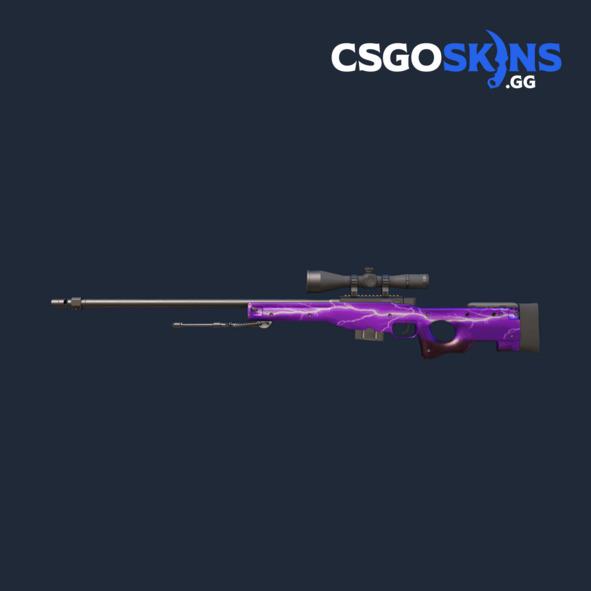 Скин AWP Lightning Strike в CS: GO с ярким фиолетовым дизайном и молниями