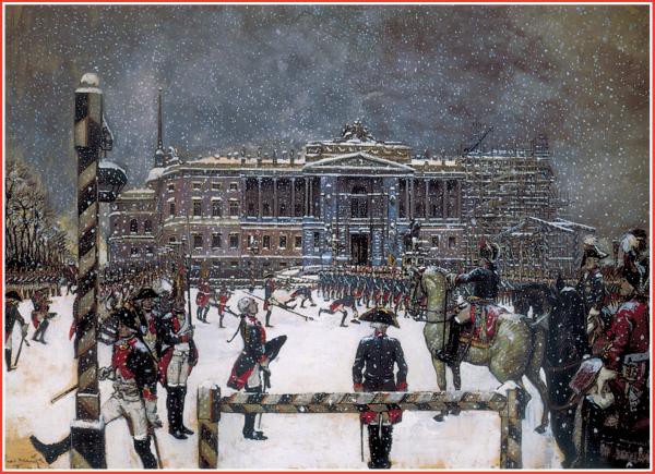 Царствование. Император Павел I был первый царь, в некоторых актах которого как будто проглянуло новое направление, новые идеи. Я не разделяю довольно обычного пренебрежения к значению этого кратковременного царствования. Напрасно считают его каким-то случайным эпизодом нашей истории, печальным капризом недоброжелательной к нам судьбы, не имеющим внутренней связи с предшествующим временем и ничего не давшим дальнейшему. Нет, это царствование органически связано как протест – с прошедшим, а как первый неудачный опыт новой политики, как назидательный урок для преемников – с будущим. Инстинкт порядка, дисциплины и равенства был руководящим побуждением деятельности этого императора, борьба с сословными привилегиями – его главной задачей. Так как исключительное положение, приобретенное одним сословием, имело свой источник в отсутствии основных законов, то император Павел I начал создание этих законов.