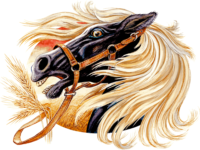Когда кавалеристы проходили через деревню Бережки, немецкий снаряд разорвался на околице и ранил в ногу вороного коня. Командир оставил раненого коня в деревне, а отряд ушёл дальше, пыля и позванивая удилами, – ушёл, закатился за рощи, за холмы, где ветер качал спелую рожь. Коня взял к себе мельник Панкрат.