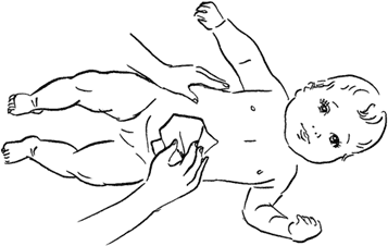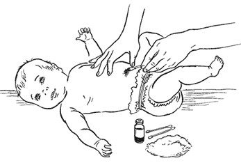 • средство для обработки пупка и опрелостей (1 %-ный раствор бриллиантовой зелени, перекись водорода, марганцовка, тальк или детская присыпка),