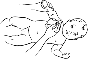 При пеленании не стягивайте ножки малыша и, прокладывая подгузник, оставляйте их слегка разведенными. Подобное широкое пеленание сохраняет правильное формирование тазобедренных суставов.