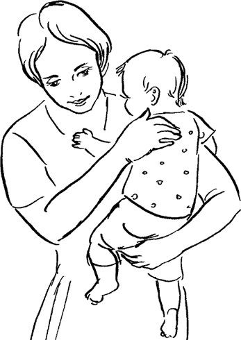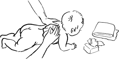 положите его голым пузиком на свой обнаженный живот, займите при этом полулежачее положение, прикройте сверху одеяльцем и поглаживайте его спинку. Эта процедура «кожа к коже», «живот к животу» имеет к тому же благоприятное психотерапевтическое воздействие и на ребенка, и на маму.