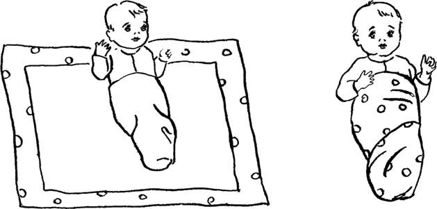 При нормальной температуре воздуха в помещении на ночь укрывайте запеленатого малыша до пояса еще и легким байковым одеялом. Помимо этого вы можете пользоваться дополнительно мягкими трикотажными ползунками для самых маленьких, похожими на комбинезон с удобной застежкой. При необходимости ползунки можно использовать одновременно с обычными пеленками. Но не перегревайте его излишним укутыванием!