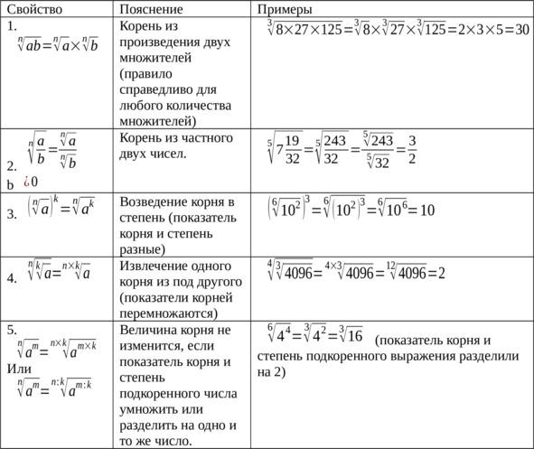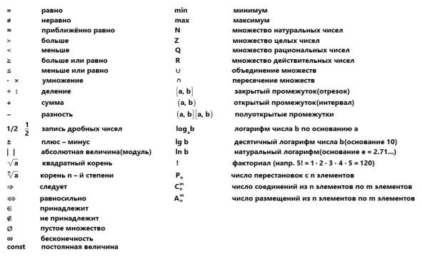 Для удобства и упорядочивания вышеизложенных сведений можно составить такую таблицу.