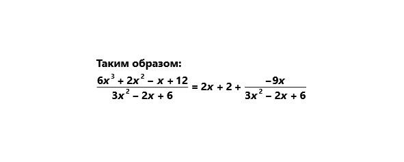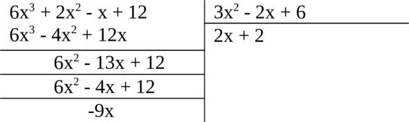 Например, разделим 6x3 +2x2 — x +12 на 3x2 — 2x +6
