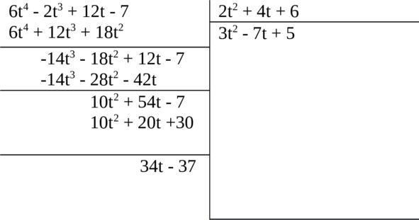 5. Множим полученный второй член частного на делитель, результат 6x2 — 4x +12 подписываем под первым остатком.