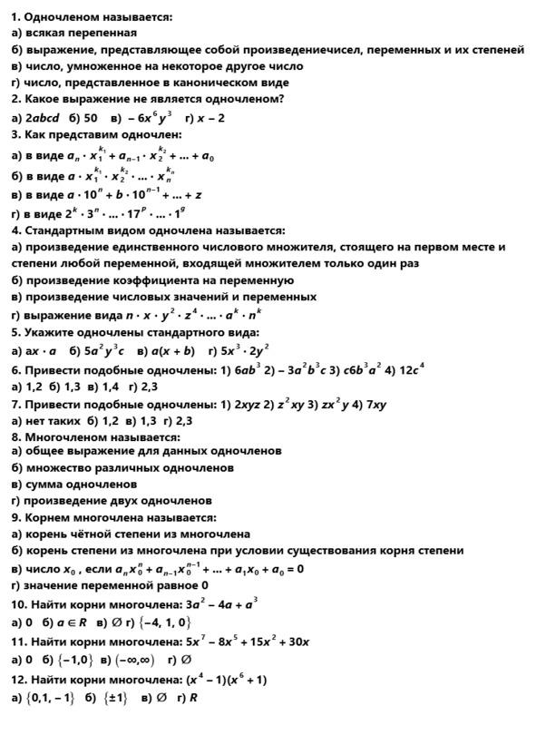 Для начала мы ознакомимся с понятиями «одночлен» и «многочлен».