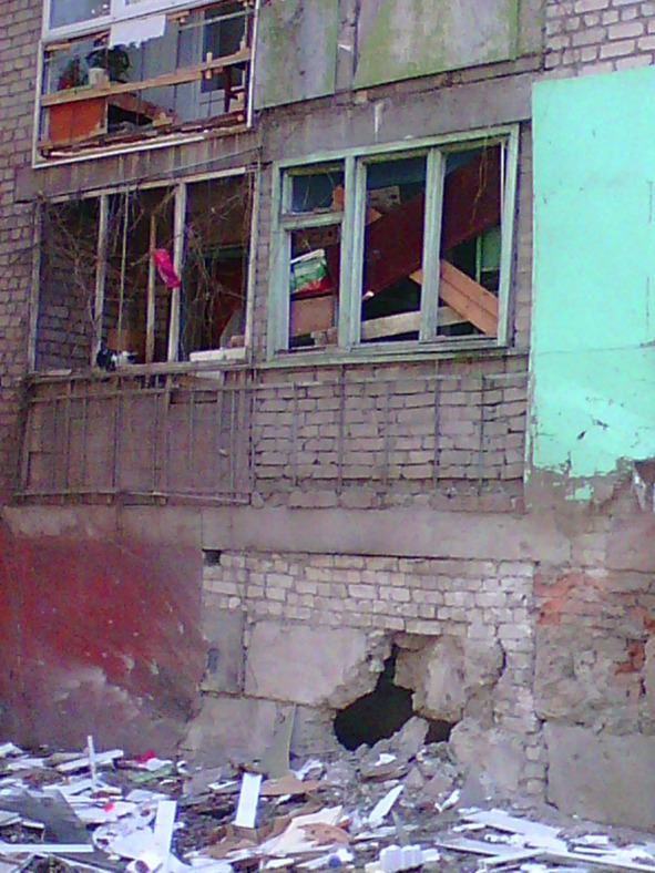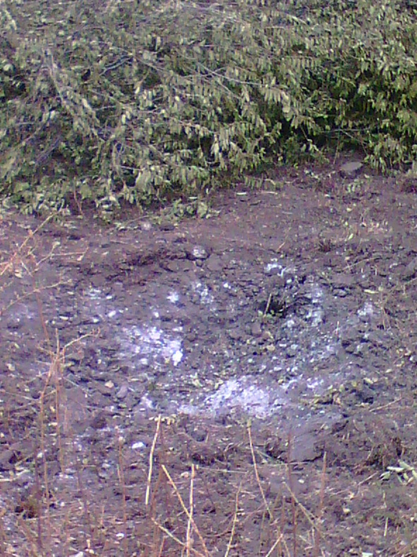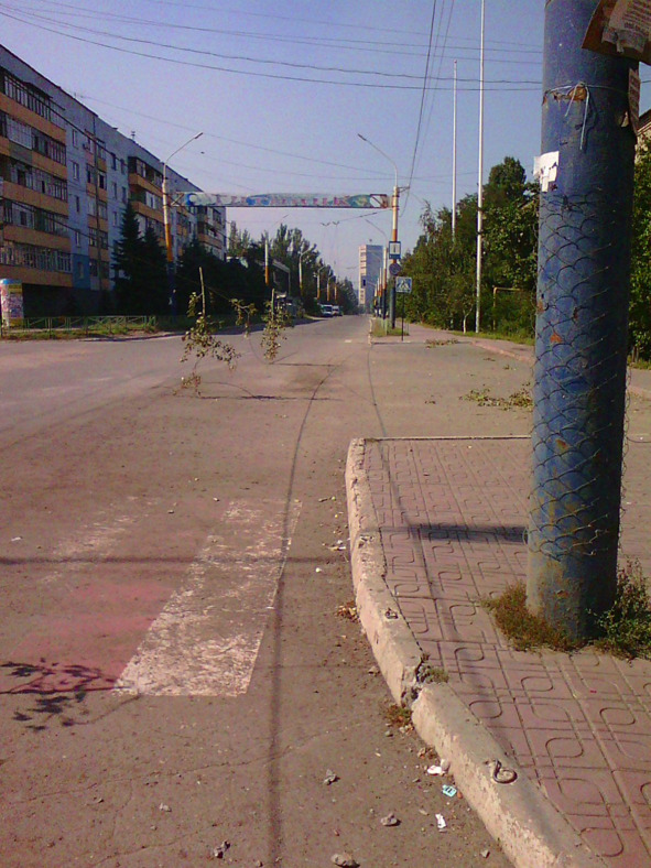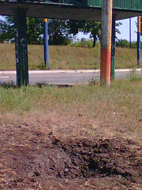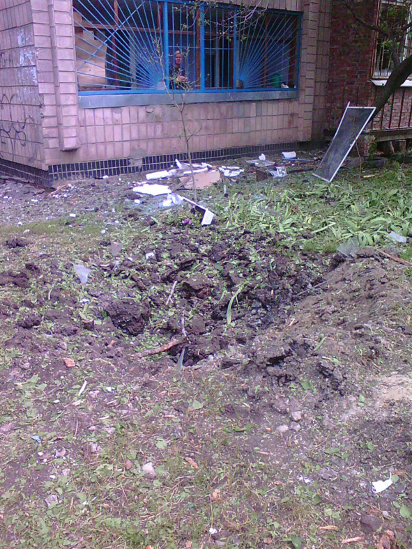 И так трижды… Наконец стихло. Пошла пешком. Денег всё меньше и меньше… Несу две двухлитровые бутылки с водой, чтобы там не стоять в очереди и не попасть под обстрел, как вчера. Тем более, что сегодня ради праздничка можно ждать любых сюрпризов! Прошла за храмом через парк, где в мирное время студенты Академии внутренних дел бегали кроссы. Там небольшая детская площадка. И прямо в песочнице — воронка! Это, детки, вам подарочек от доблестной украинской армии, которой так гордится президент! Дай Бог, чтобы вчера никто в этой песочнице не играл, когда начался обстрел, дело-то было около полудня!