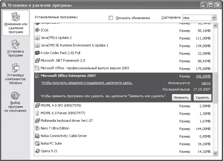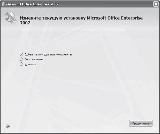 Рис. 1.13.Окно изменения параметров установки Microsoft Office 2007