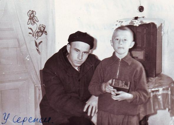 Редкое фото, Борис Елфимов, друг брата Сергея и я. В любимом уголке большой комнаты. 1962 год, мне 10 лет. Успенка.