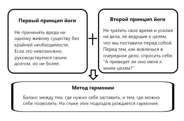 В йоге есть 2 основных принципа, 2 ноги, на которых стоит система йоги: это принцип не причинения вреда и принцип здравого смысла.