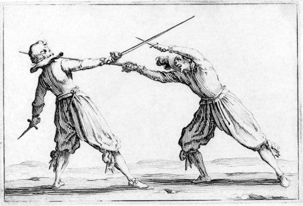 Ж. Калло. Дуэль на шпагах и кинжалах. 1622 г.