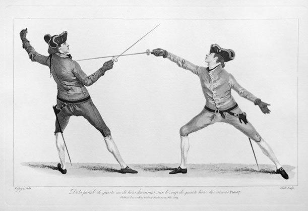Тренировка фехтовальщиков. Гравюра. XVIII в.