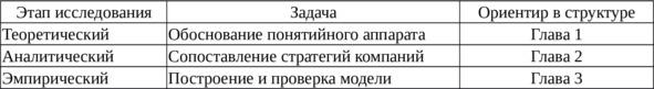 Фиксация этапов движения к цели выражена через структурирование исследовательских задач, таблица 2.