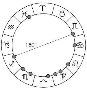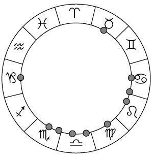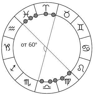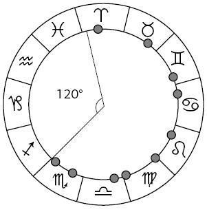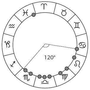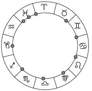 В такой фигуре планеты равномерно распределены (разбросаны) по зодиакальному кругу (см. рис. 2). В карте при этом не должно быть обширных пустот, а между планетами – ни одного разрыва более 60°.