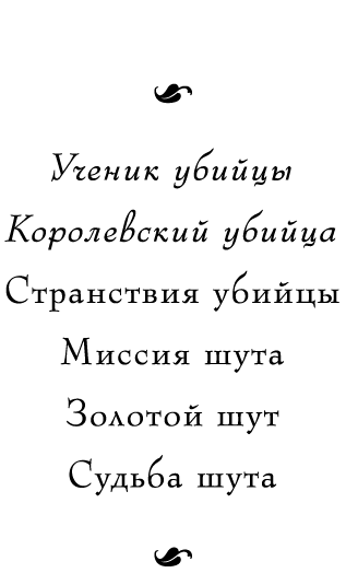 Итак, я прибыл в Олений замок — одинокий ребенок, незаконный сын человека, которого никогда не знал. Принц Верити вскоре стал законным наследником, и принц Регал передвинулся на ступеньку ближе к заветному трону. Если бы я только родился, был обнаружен и сразу сгинул без следа, это все равно бы оставило в истории Шести Герцогств неизгладимый след. Я вырос без отца и матери при дворе, где меня считали причиной всех бед. И я действительно стал причиной всех бед.