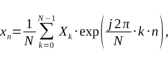 где k — номер выборки в частотной области, n — номер выборки во временной области, N — количество точек ОДПФ, Xk — комплексная амплитуда на поднесущей частоте. Передатчик формирует сигнал, сообщение в котором распределено между спектральными составляющими. В сигнал добавляются циклический префикс (ЦП), нулевые и пилот- поднесущие сигнала. Если нет дублирования, то кратковременные флуктуации уровня сигнала в узкой полосе частот приведут к искажению нескольких битов, однако за счет более низкоскоростной передачи большего количества символов одновременно это отклонение значения можно выявить и скомпенсировать.