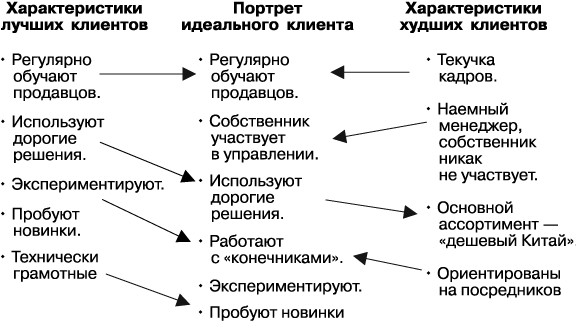 Сочетание тебя, твоей компании и ваших решений уникально. Кому-то этот сплав полезен, а кто-то вас на дух не переносит. Попробуй выделить особенности своих сторонников. Возьми пять своих лучших клиентов (приносят достойную прибыль и «вменяемы» при взаимодействии) и пять худших. Проанализируй — чем лучшие похожи друг на друга и что объединяет худших. Результаты по худшим «переверни» (умножь на –1).