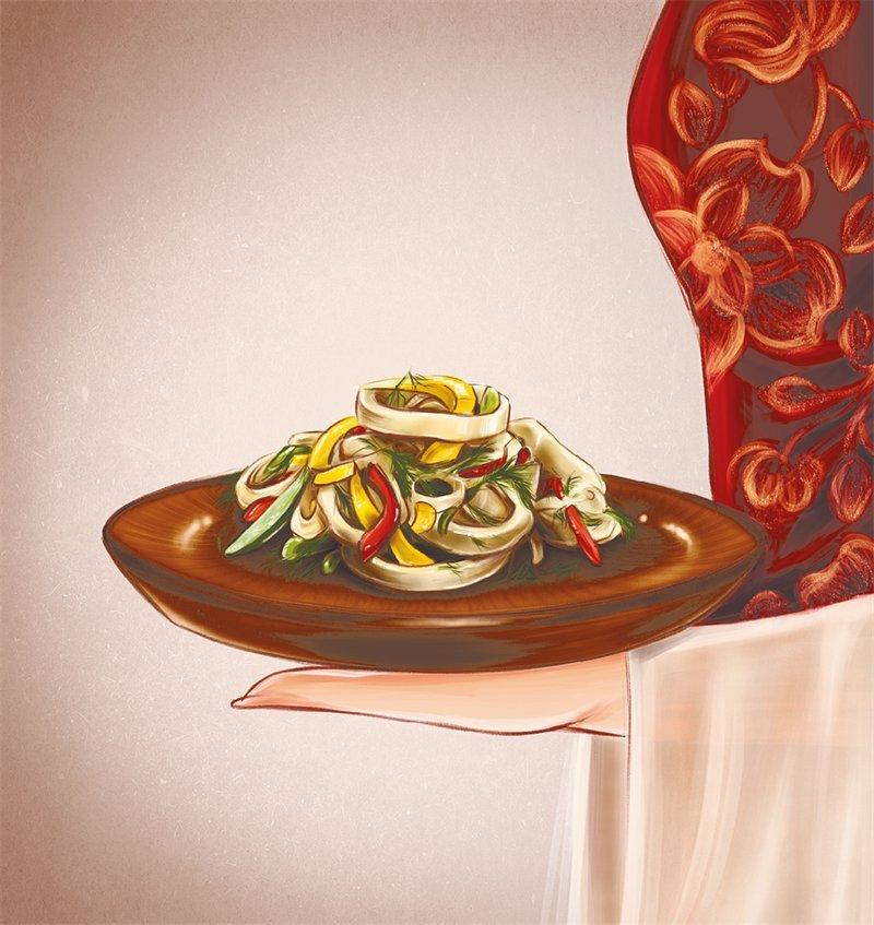 Морепродукты – частый ингредиент в османской кухне. Мясо кальмаров очень нежное и сочное, и оно не теряет своих вкусовых качеств даже в холодном виде.