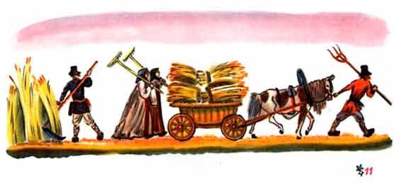 Стало светать, баба принялась за печь, а мужик пошел скотинке корму задать.