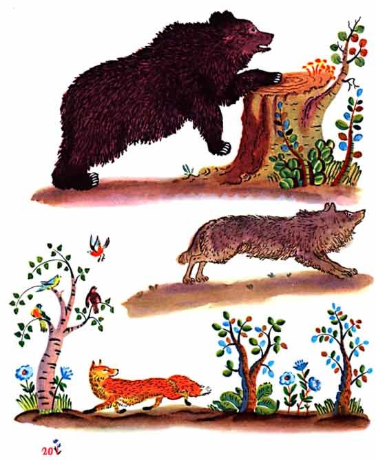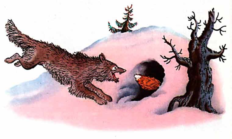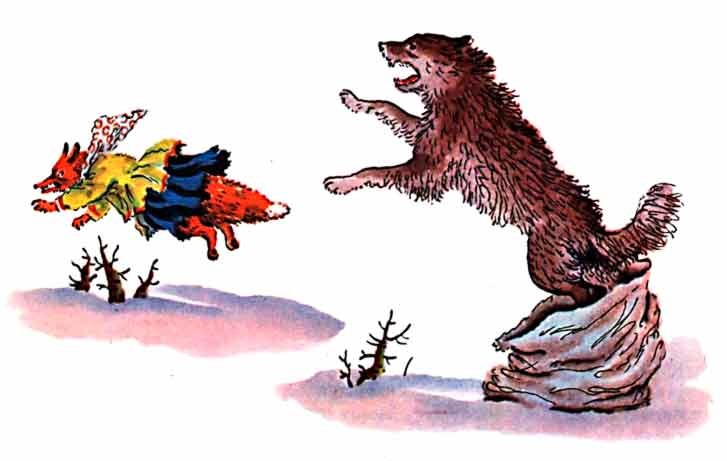 — А, так ты не давал мне бежать! Постой, вот я тебя! — сказала лиса и, высунув хвост из норы, закричала собаке: — На вот, съешь его!