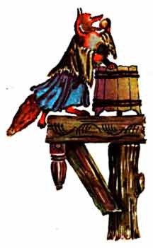 Пустили лису. Вот поклонилась она хозяину и отдала ему на сбережение свою курочку, сама же смирнехонько улеглась в уголок на лавку, а хвостик подвернула под лавку.