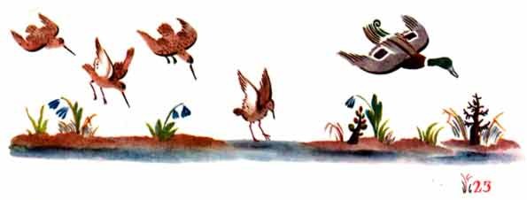 Махнул старик годовик второй раз — и полетела вторая тройка. Снег стал таять, на полях появились цветы.