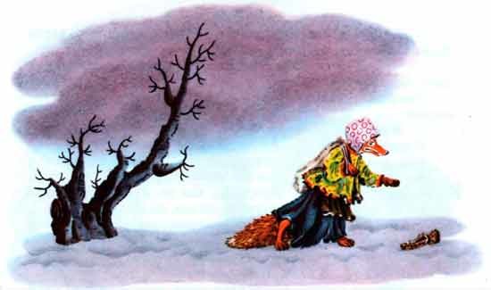Проснулась и лисица, побежала за лапотком — глядь, а лаптя как не бывало. Взвыла лиса: