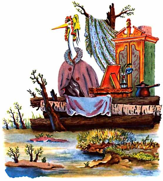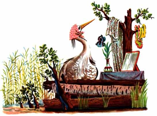 — Так счастливо оставаться, хозяюшка, — сказала, кланяясь, лиса. — Моя плосконосочка уже, чай, проснулась. Давай ее, бабушка, скорее, пора и нам с нею пуститься в дорогу.