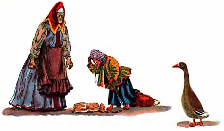 — Возьми же, матушка Лиса Патрикеевна, возьми любого гуська! А уж я тебя напою, накормлю, ни маслица, ни яичек не пожалею.