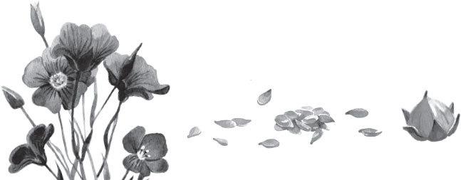 Когда цветочки опали, то на месте их показались зелёные головки. Когда головки забурели и подсохли, мать и сёстры Тани повыдергали весь лён с корнем, навязали снопиков и поставили их на поле просохнуть.