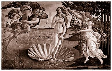 Легенда о рождении Афродиты (которую римляне называли Венерой) в 1480-х годах послужила вдохновением для создания одного из самых известных произведений искусства Ренессанса — картины «Рождение Венеры» Сандро Боттичелли: здесь показана богиня, выходящая из вод. Возможно, моделью для Венеры стала прекрасная Симонетта[5] (в эпоху Возрождения в Италии ракушка была метафорой как раз для той части тела, которую Венера прячет на этой картине).