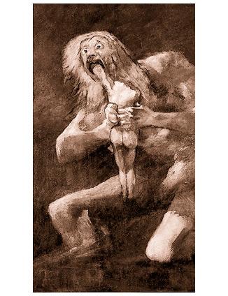 Кронос попытался отвратить возмездие со стороны своих детей за то, что сделал с собственным отцом, но убить их не мог, поскольку боги бессмертны. Опыт Урана подсказывал, что затолкать их обратно во чрево матери тоже не выход. Так что Кронос взял дело в свои руки (точнее, в свой желудок): он проглатывал детей по мере рождения (метафизическое отражение того факта, что в конце концов Время пожирает всех своих детей).