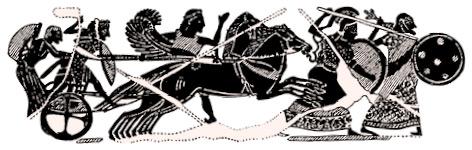 Боги, отправляющиеся на битву с гигантами (с греческой вазы работы Никосфена)