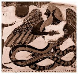 Последним и самым страшным соперником, бросившим вызов власти Зевса, стал Тифон — стоглавый, ураганный, дышащий огнем. Тифон был младшим сыном Геи, и ему почти удалось обеспечить силам беспорядка и тьмы победу. Но Зевс поразил Тифона молниями, которые сделали для него циклопы, и сбросил его на землю, под гору Этна на Сицилии. Отсюда Тифон все еще время от времени изрыгает огонь в бессильном гневе[7].