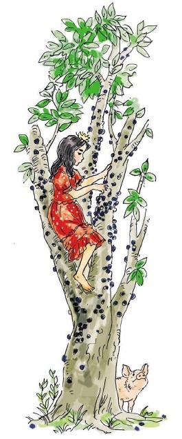 Каждый вечер она берёт куклу и отправляется на берег ручейка, садится на выступающий из земли корень старого дерева инга́ и кормит крошками рыбок ламба́ри.