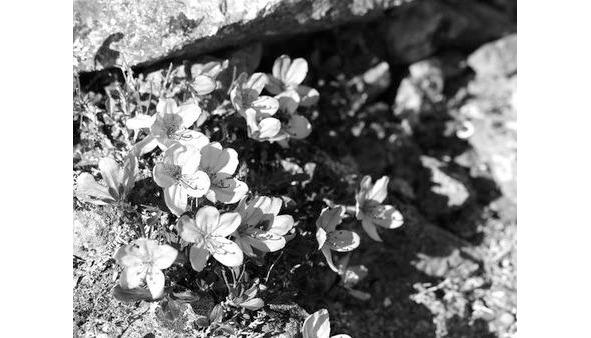 На каменистых склонах растительность располагается пятнами или полосами, вытянутыми вдоль склона. Это объясняется тем, что мелкозем, необходимый для укоренения, вымывается из крупнообломочного материала и концентрируется в виде пятен и полос. Однако и среди нагромождения обломков кое-что растет, в особенности камнеломка Редовского и лапчатка одноцветковая. Распространены мхи, лишайники и подушковидный кустарник диаспенсия, чрезвычайно морозоустойчивое растение. В природе она переносит морозы до -70 градусов без защиты снежного покрова.