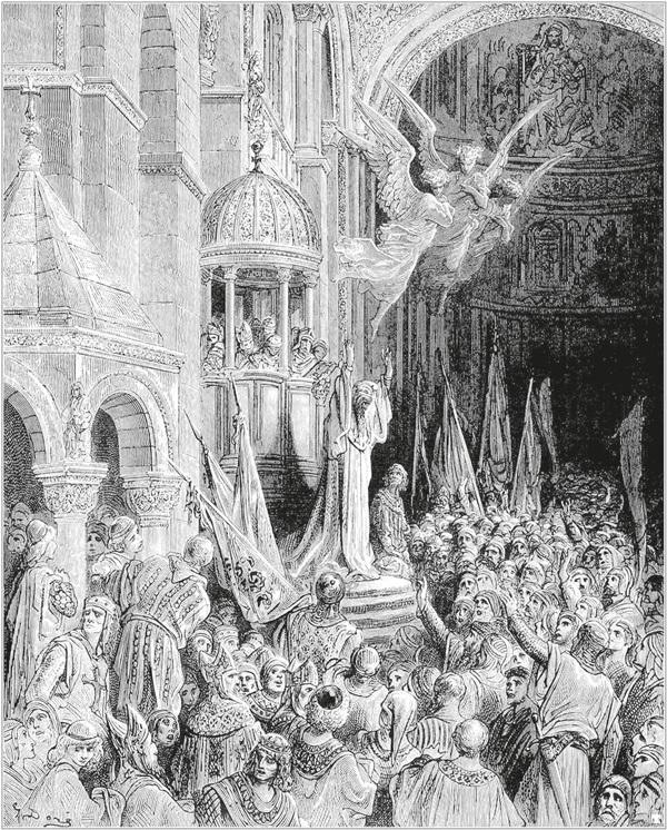 Гюстав Доре. Победоносный Саладин. Гравюра. XIX в.