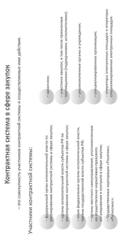 Опираясь на эти схемы, преподаватель сможет прочитать лекционный курс, а слушатели получат наглядные представления о ключевых моментах процесса госзакупок.