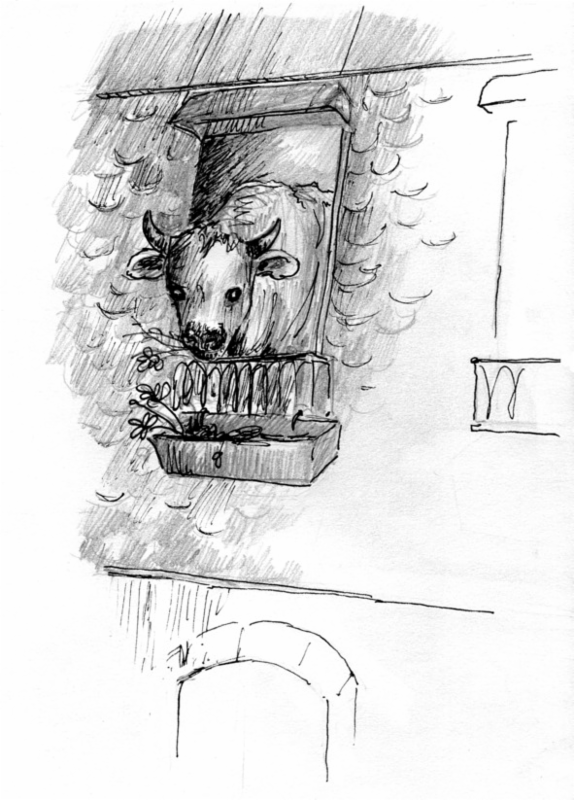 Назавтра по квартире ходил большой теленок и стучал копытами, за ним — хозяин с дезодорантом и все брызгал и брызгал.