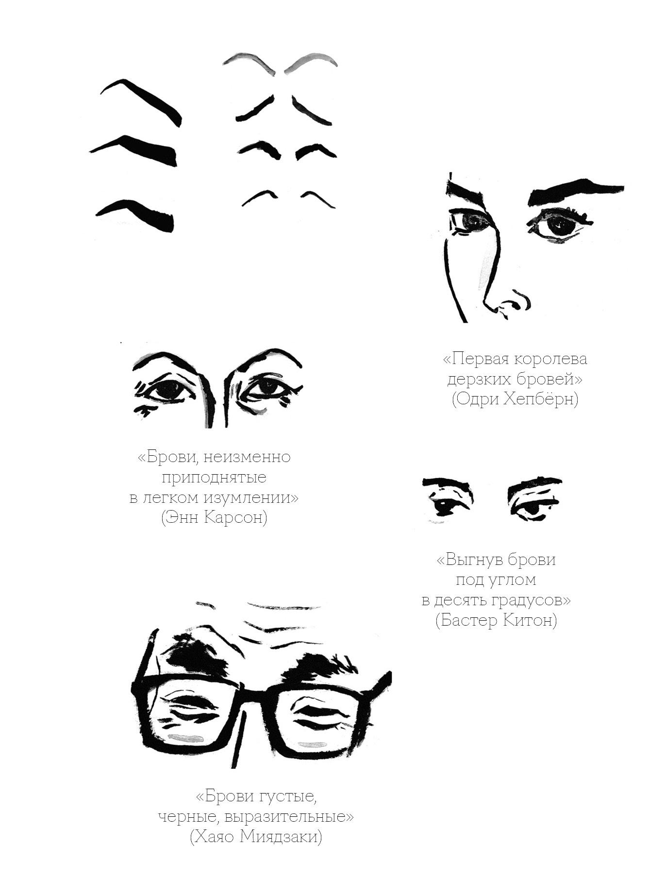 Я присматривалась к бровям своих любимых писателей, художников и актеров. Изучала знаменитые брови. Фрида. Одри. Грета. Граучо. «Вполне возможно, брови — карта души», — извещал какой-то модный журнал. Я искала секретный рецепт (безукоризненная элегантность, театральная броскость, креативная разлохмаченность, кокетливый задор), который дает жизненные силы и ведет к благоденствию. Хотела отыскать карту, которая укажет мне путь обратно, где я снова обрету творческую жилку и самообладание.