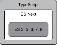 В общем смысле слово надмножество подразумевает, что это надмножество содержит все, что есть в самом множестве, плюс что-то еще. Рисунок 1.1 представляет TypeScript как надмножество ECMAScript, являющегося спецификацией для всех версий JavaScript. ES.Next представляет самые последние дополнения в ECMAScript, которые еще дорабатываются.