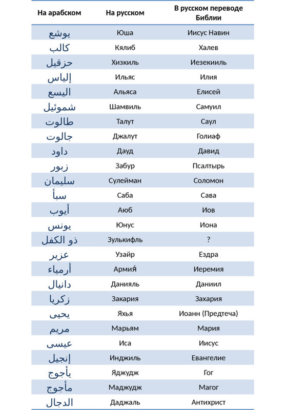 В русском переводе Библии Мусу называют Моисеем, Харуна – Аароном, а Юшу (сына Нуна) – Иисусом Навином.