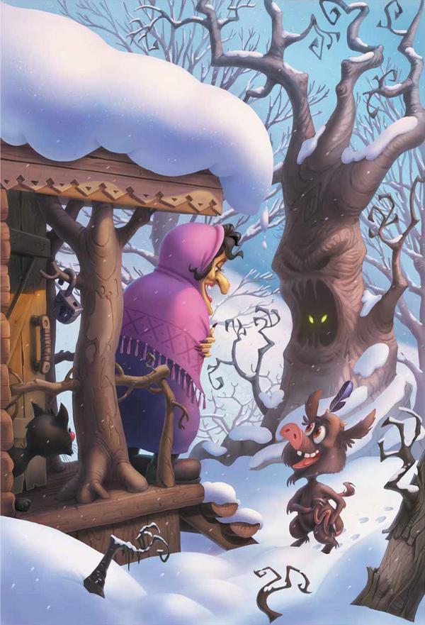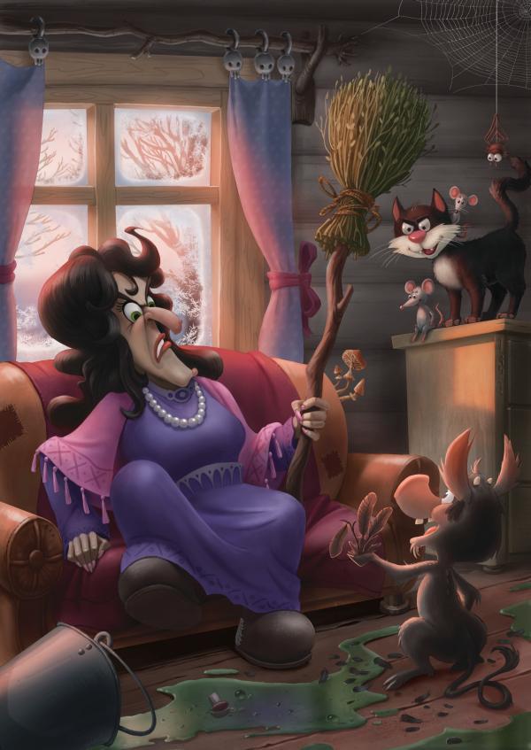 Зима в этот год выдалась суровая. А в дремучем лесу за Лысой горой, где как раз и жила Ведьма, было ещё холоднее. Тут даже волки не водились, а деревья от холода почернели и скрючились. Вот какой холод стоял.
