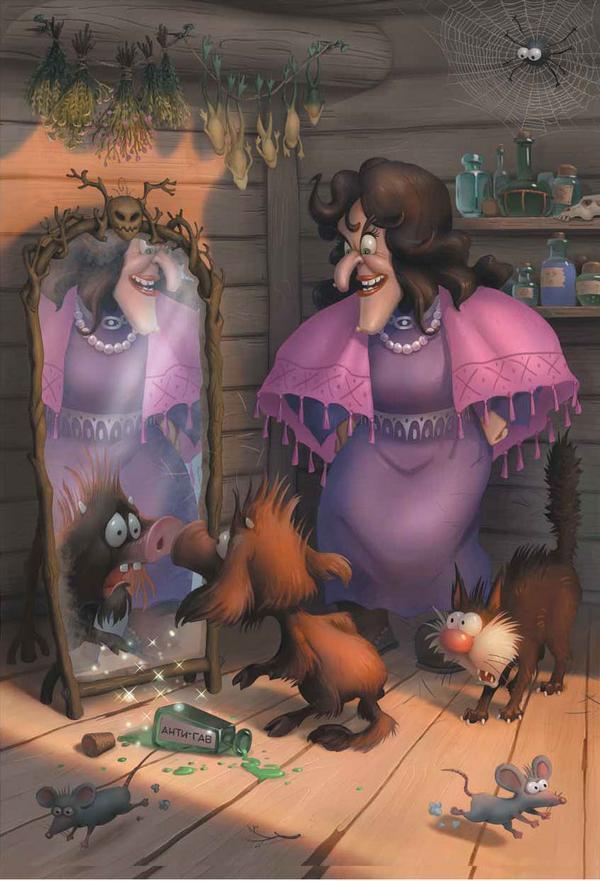 – Ух, хитрец какой! – Ведьма взяла с полки прозрачный пузырёк с густым чёрным зельем: – Вот. Пей! Против лая. Сама приготовила.