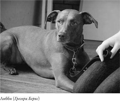 В противоположном конце тренировочного помещения Питер Кук, наш коллега, защитивший в Санта-Крузе диссертацию по морским львам, занимался второй группой собак, менее покладистых, чем ретриверы. Эту компанию буйных возглавляла Либби, питбуль шоколадного окраса с переломанным хвостом, которая сейчас застыла как статуя, положив морду на опору для подбородка, сооруженную нами, чтобы собакам удобнее было удерживать нужную позу во время сканирования. Нынешняя хозяйка Либби, Клэр Пирс, подобрала ее когда-то на обочине калифорнийского шоссе и только благодаря своему опыту инструктора-дрессировщика смогла социализировать бойцовую собаку достаточно, чтобы ее можно было выводить на люди. Но люди — это полбеды, гораздо хуже дело обстояло с себе подобными. На других собак Либби по-прежнему кидалась и лаяла. Клэр отгородила в нашем тренировочном помещении закуток, чтобы держать Либби под присмотром и обезопасить остальных.